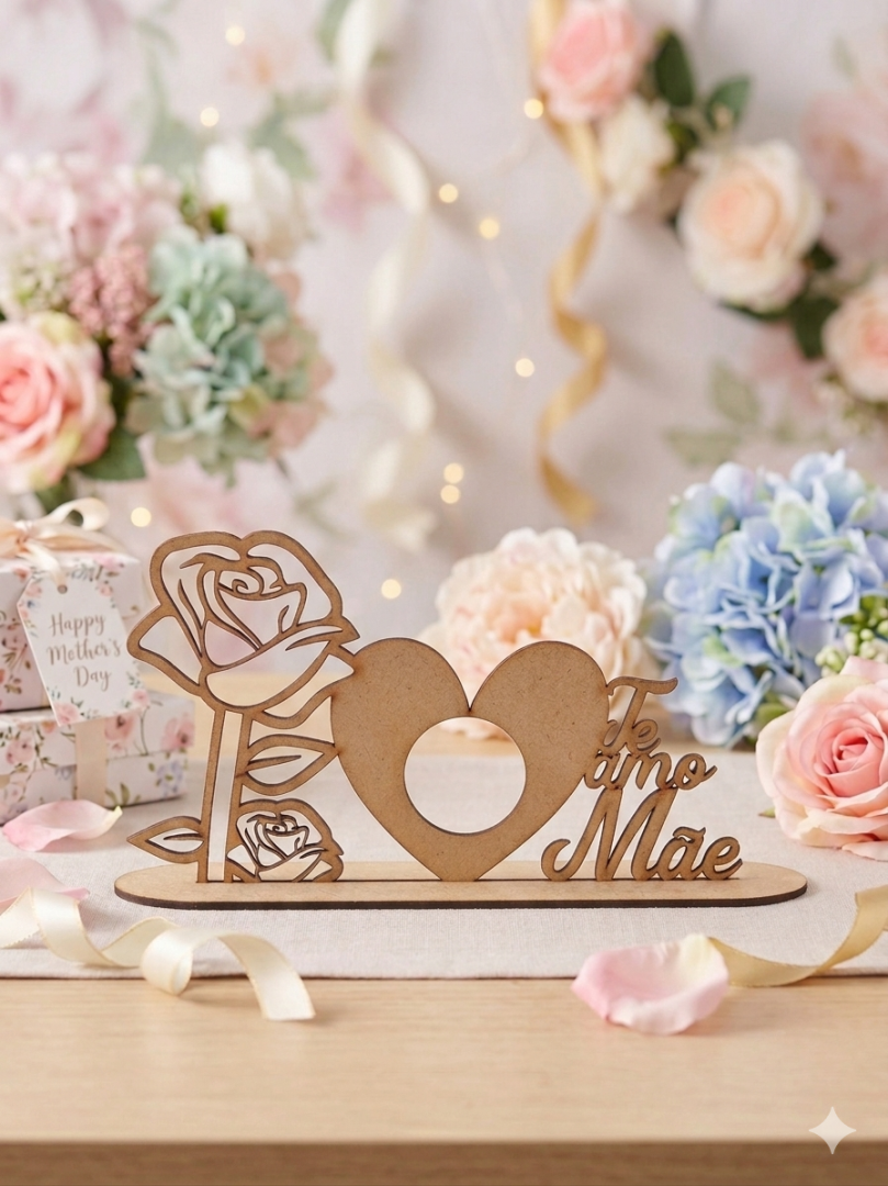 Letreiro ou Porta bombom Rosa Mãe te Amo